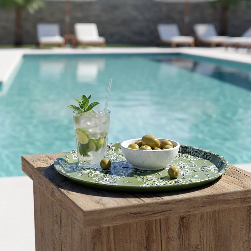 Avec son motif bandana revisité en kaki, ce plateau apporte une note de décoration élégante à votre intérieur. Son design reprend un motif bien connu du textile, adapté ici à un usage quotidien. Pratique au moment de l’apéritif, du café ou du petit déjeuner, il peut être utilisé aussi comme accessoire déco sur une table basse, un plan de travail ou une étagère.