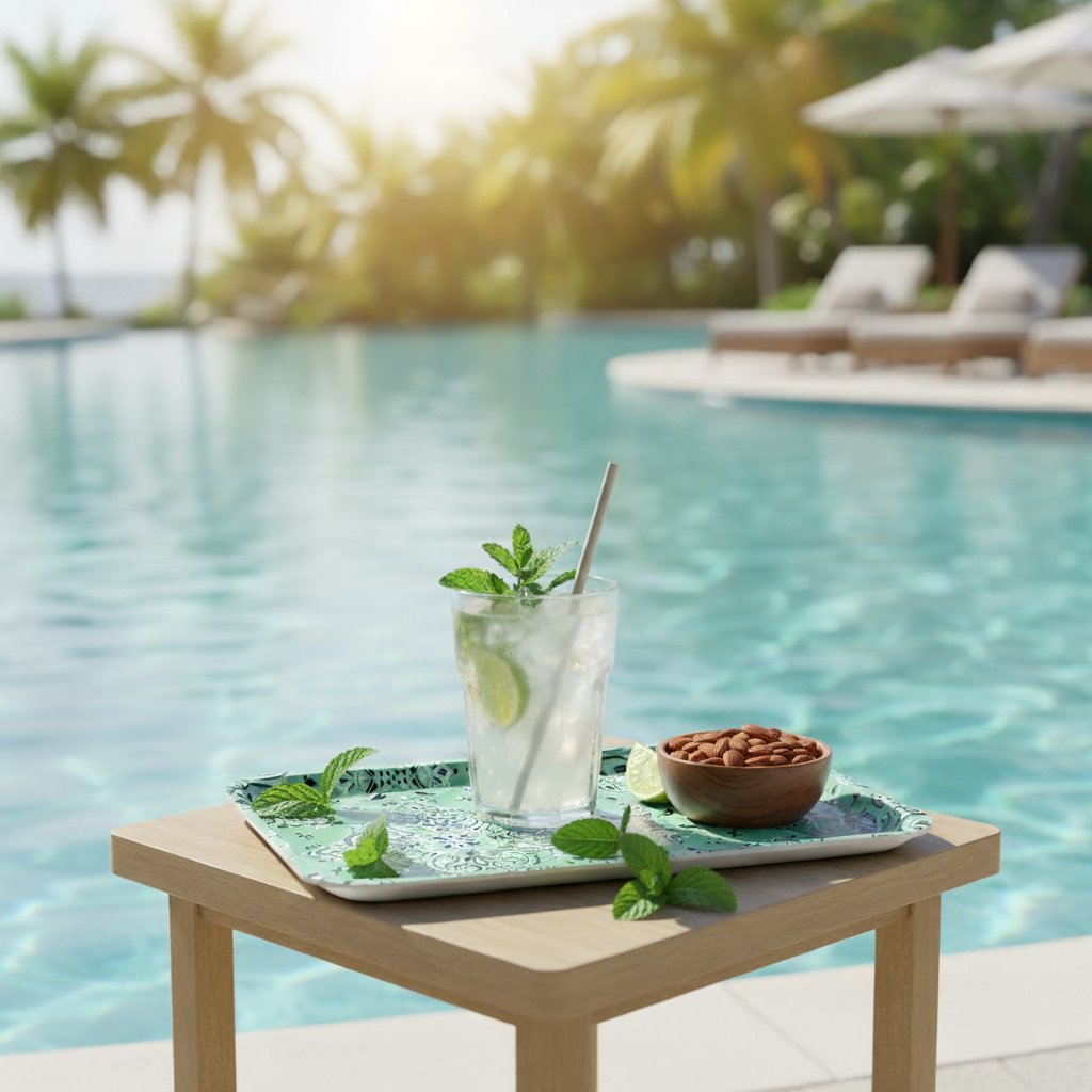 Avec son motif Bandana Menthe imprimé sur les deux faces, ce plateau se distingue par son design simple et familier. Il est idéal pour un usage quotidien : servir un apéritif, un café ou un petit déjeuner, ou rester posé comme accessoire décoratif en cuisine ou au salon.