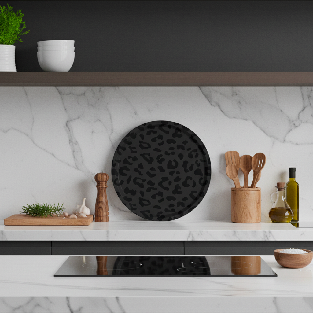 Pourquoi choisir ce plateau Léopard Ebène Rond ?