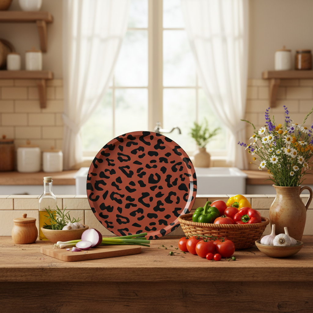 Pourquoi choisir ce plateau Léopard Terracotta Rond ?